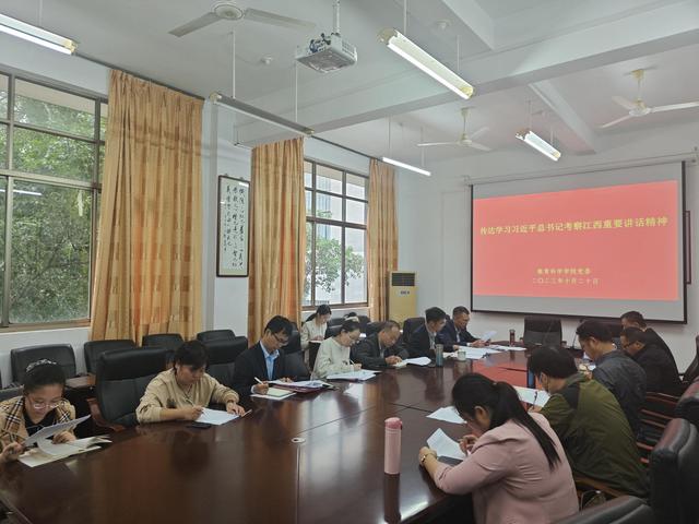 会议强调,各党支部要带领全体党员同志和教职员工深刻领会习近平总书记考察江西重要讲话精神,全面贯彻落实,把习近平总书记的殷切嘱托转化为工作动力,不断开创教育科学学院高质量发展新局面。要着力弘扬教育家精神,做好宣传教育,让学生在不断学习习近平新时代中国特色社会主义思想中胸怀“国之大者”、锤炼过硬本领、强化使命担当,推动党的创新理论入脑入心、落地生根。