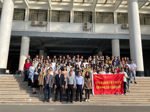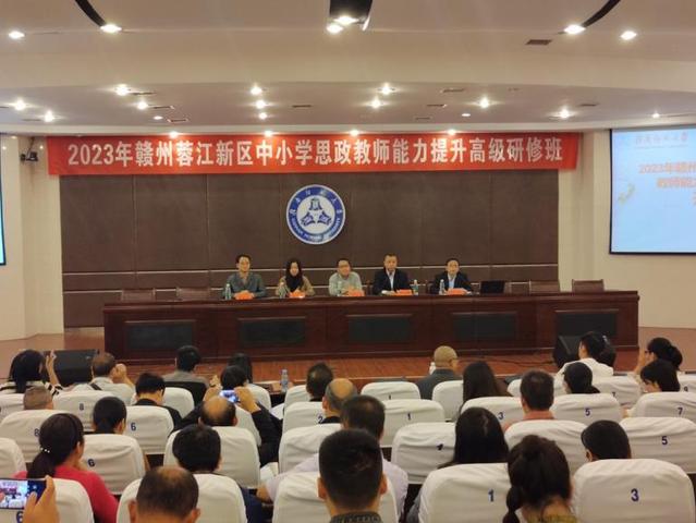 11月1日,赣州市蓉江新区中小学思政教师能力提升高级研修班开班仪式在图书馆科报厅举行。赣州市蓉江新区社会事务管理局教研工作负责人余承鸿主任、教研师训电教工作协助负责人王希主任,我校教育科学学院院长邱小健,继续教育与培训学院副院长宁峰,以及本次培训项目负责人曾素林博士出席开班仪式,来自赣州市蓉江新区的100名思政教师参加此次培训。
