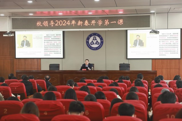 3月16日上午,校党委常委、副校长肖笃森在行政楼5楼科报厅讲授“开学第一课”。教育科学学院、数学与计算机科学学院、美术与设计学院师生代表共240余人参加。