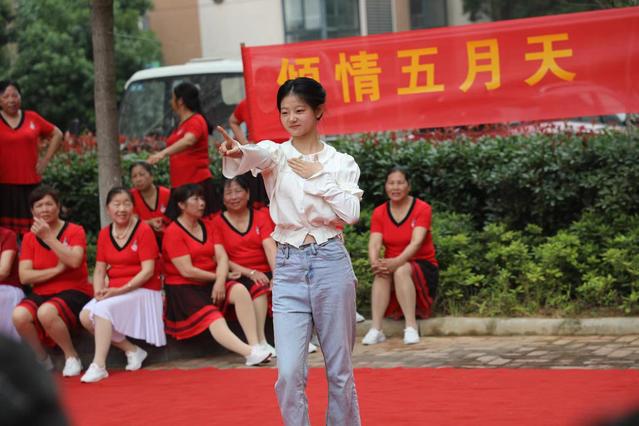 志愿者用最饱满的热情和最诚挚的才艺为社区居民们表演了歌曲节目《荷塘月色》,舞蹈串烧《与你同行》和《你笑起来真好看》,为新路村的老人们带去欢歌笑语。